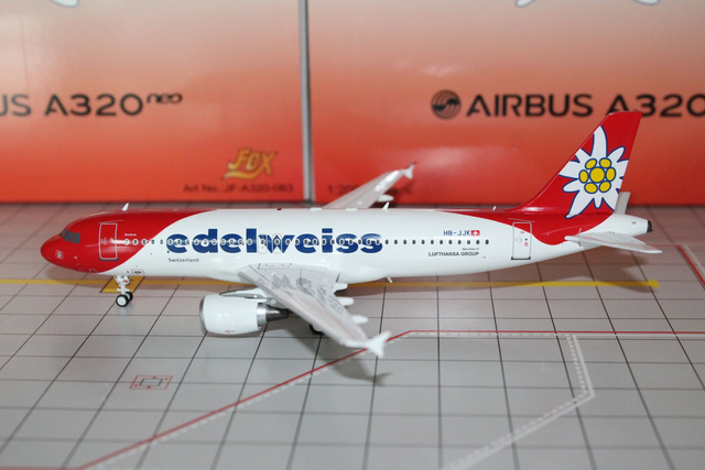 Edelweiss A320Neo (HB-JJK) diecast model, scale 1:200, from JFox, item number: JF-A320-063